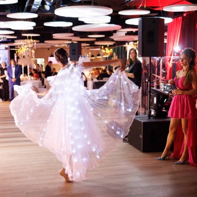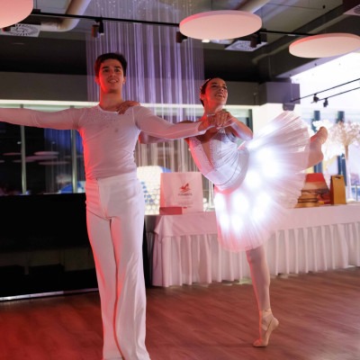 A produkció vizuális világát a pozsonyi LED-balett csapat két kiváló művésze, Carolina és Frederico emelte új szintre. Balettjük elegáns, varázslatos és ritkán látható atmoszférát teremtett – olyan előadást, amely csendet kér a teremben, és figyelmet követel a szépségnek. A két produkció együtt, a fény, a mozgás és a zene harmonikus egységében állt össze egyetlen közös élménnyé. Igazi „wow”-pillanat volt, amelyre még sokáig emlékezni fogunk.